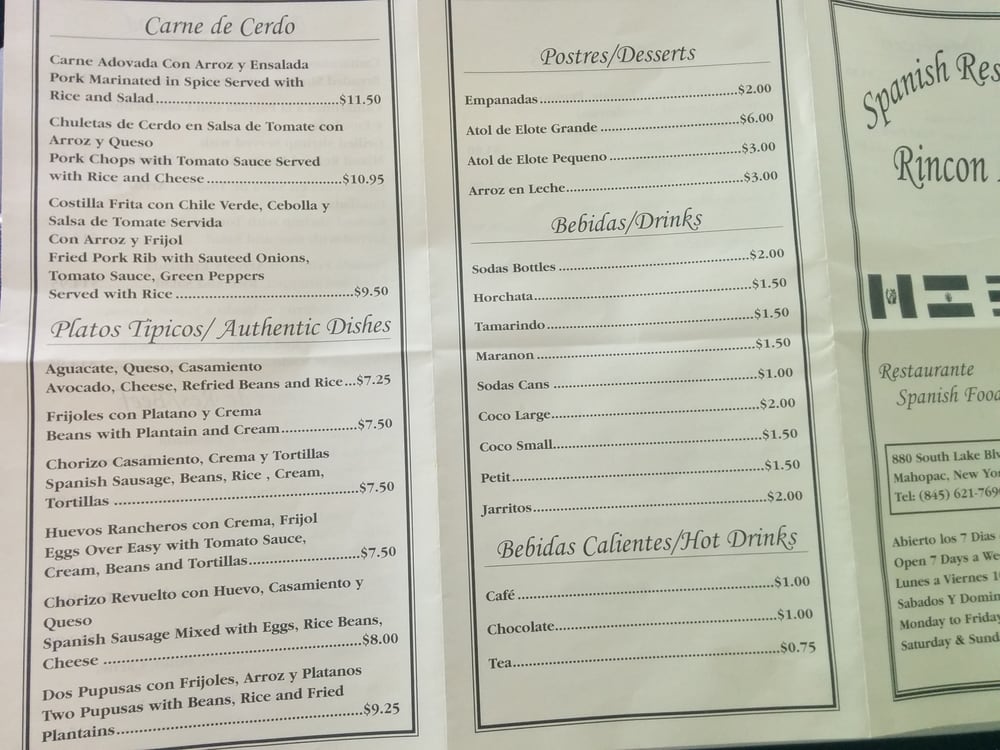 Rincon Latino Mahopac Menu (Update 2025)